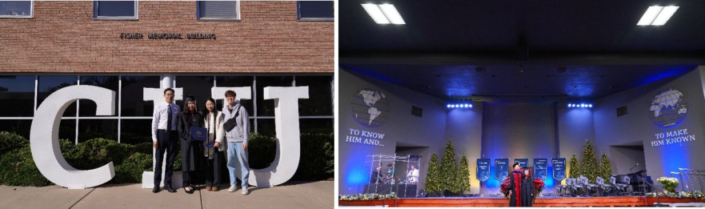 12月初,我们与家人一同到CIU校本部,参加汪洁的毕业典礼。以前的事工报告几次提到,她曾经历极深的患难与几乎死亡的幽谷,如今竟能回到宣教工场继续服事,并完成学业、在毕业典礼中见证神的作为,这是大能的主“死里复活”的记号。那几天,CIU的使命宣言再次提醒我们:To know Him and make Him known——认识主、传扬主! 我们在世上的意义,不是追求地上的稳定与掌声,而是用余生见证基督。